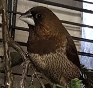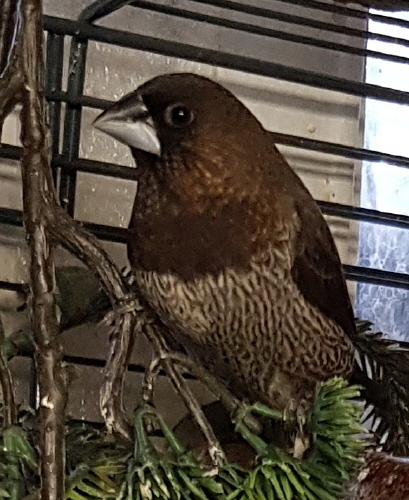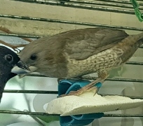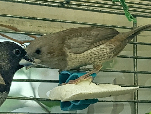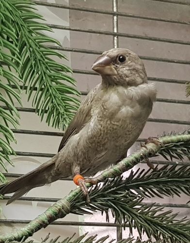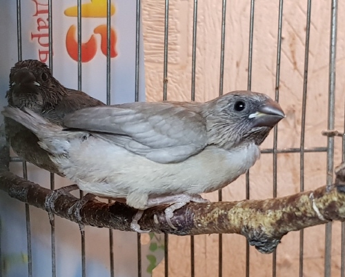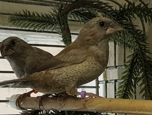 Фиона - крупная жемчужная самка (сиреневое кольцо на правой лапке):