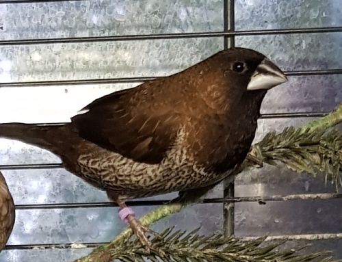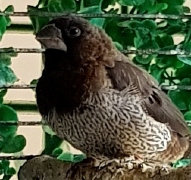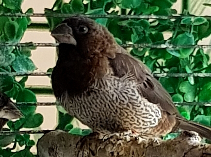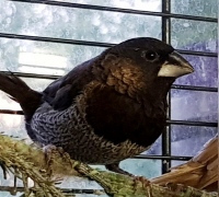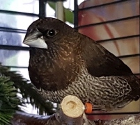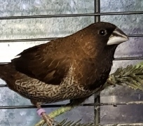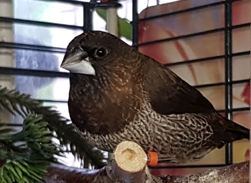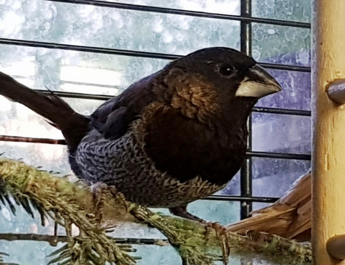 Стивен - крупный черно-коричневый самец щепный на жемчужных (оранжевое кольцо на левой лапке):