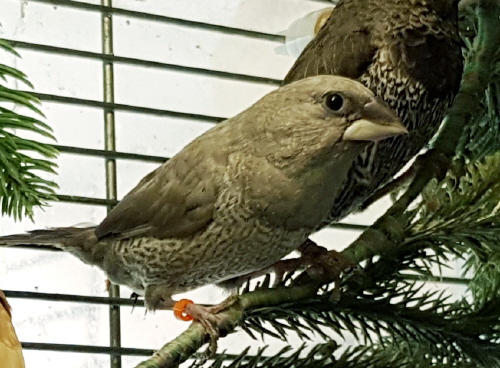 Матильда - крупная жемчужная самка (оранжевое кольцо на правой лапке):