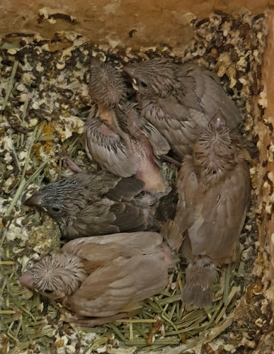 Гнездование №295: Птенцы от пары Эжен и Ребекка, рождение 17.06.21 (5 птенцов)