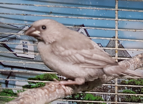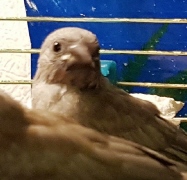 Тина - крупная хохлатая (2 хохла) жемчужная самка (сиреневое кольцо на левой лапке):