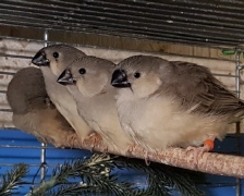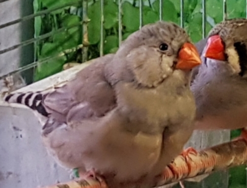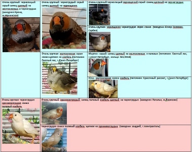 Фиджи - крупная чернолицая черногрудая серая самка щепная на оранжевогрудых и изабель (зеленое кольцо на правой лапке):