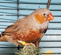 Франт - очень крупный чернолицый оранжевогрудый серый самец щепный на черногрудых и изабель (желтое кольцо на правой лапке):