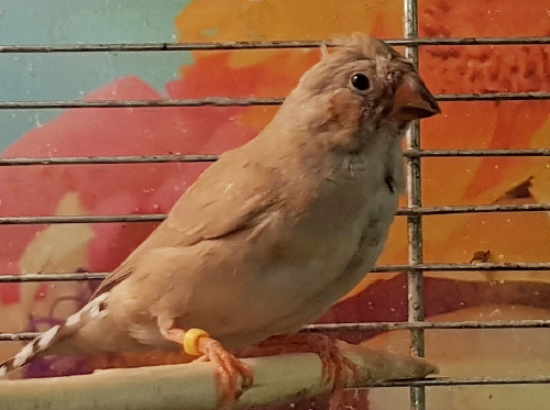 Мотя - чернолицый черногрудый хохлатый палевый самец щепный на оранжевогрудых (желтое кольцо на правой лапке):