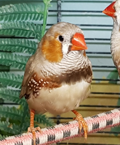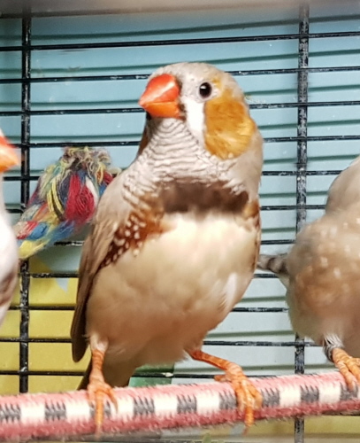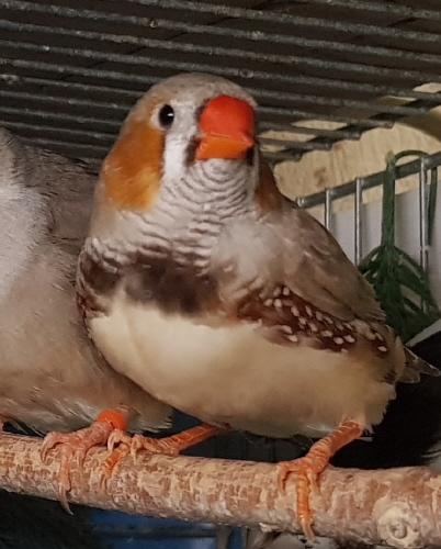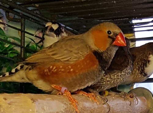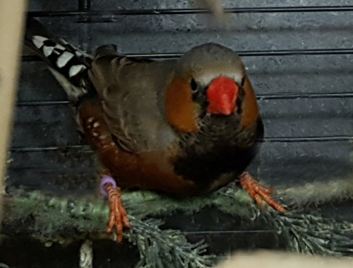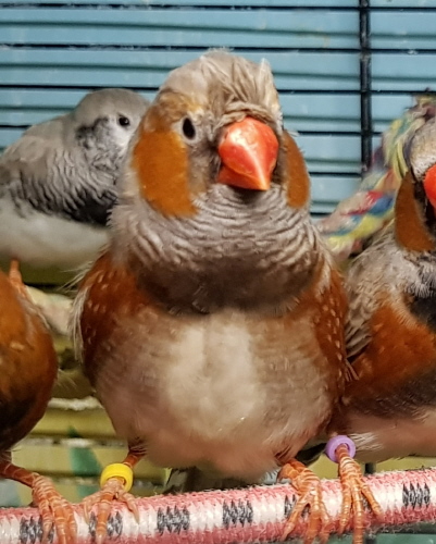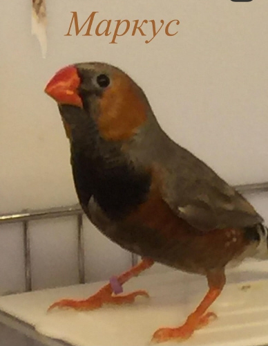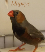 Маркус - крупный чернолицый серый самец щепный на оранжевогрудых, черногрудых и палевых (сиреневое кольцо на правой лапке):