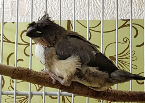 крупный хохлатый (2 хохла) черно-коричневый самец с пестротой