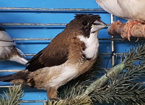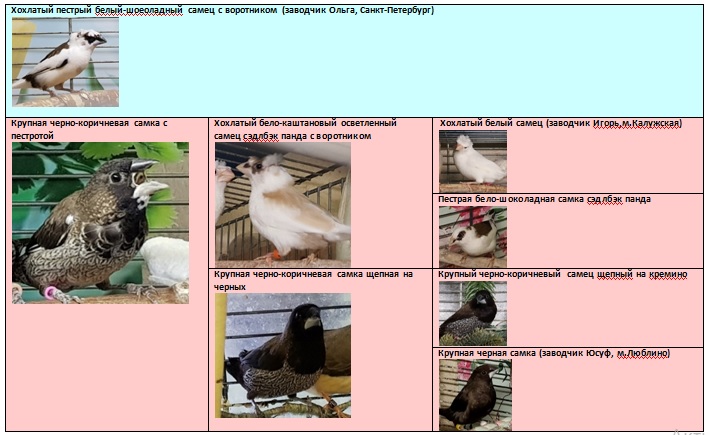 Ватсон Ватсон - хохлатый пестрый бело-шоколадный самец сэдлбэк панда с воротником |