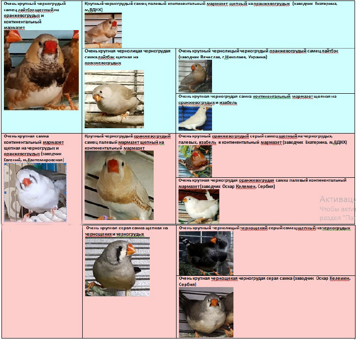 Родословная птенцов: