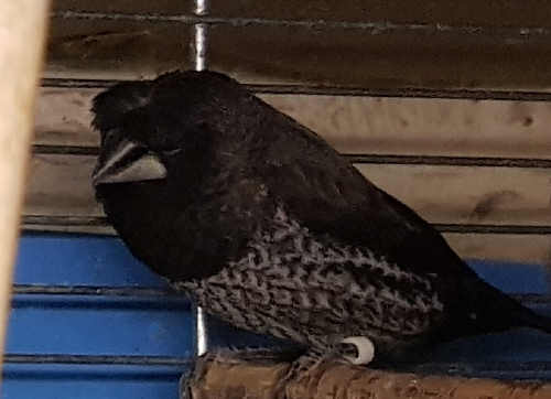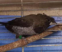 Волан - крупный хохлатый черно-серый самец (белое кольцо на левой лапке):