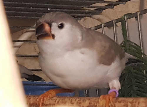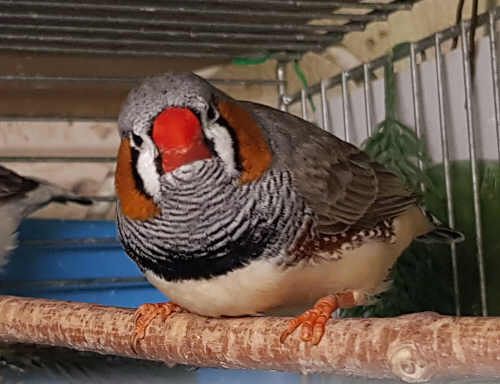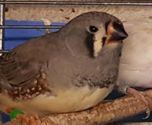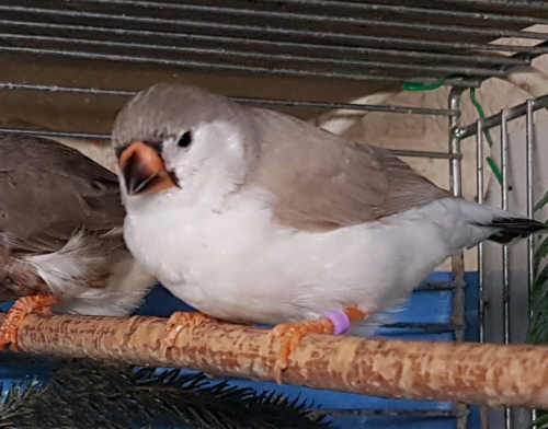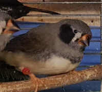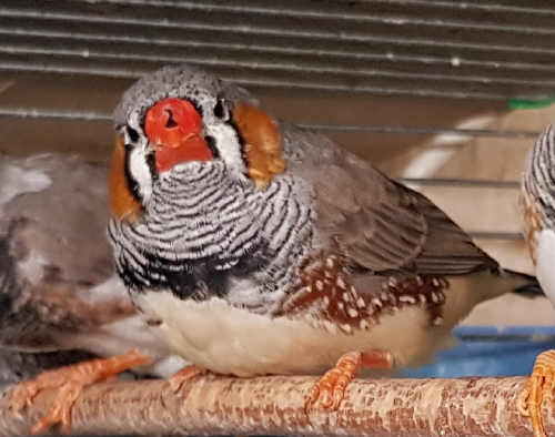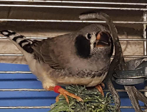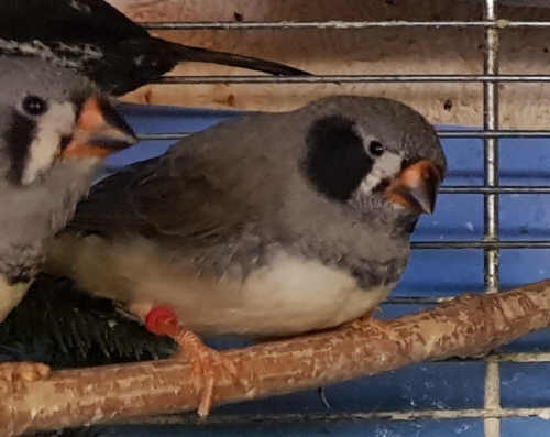 Ким - крупный чернощекий серый самец щепный на черногрудых (красное кольцо на правой лапке):
