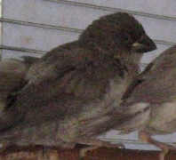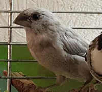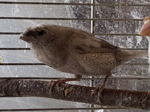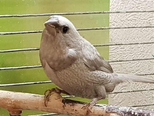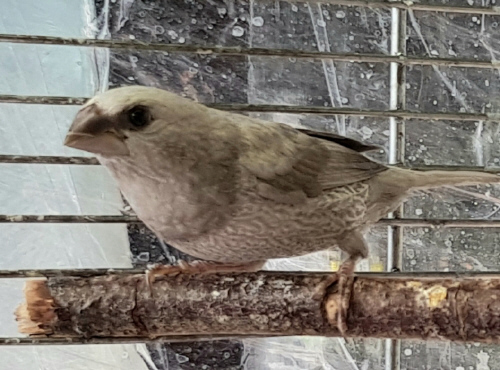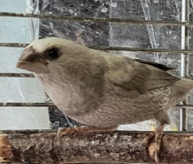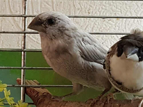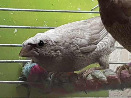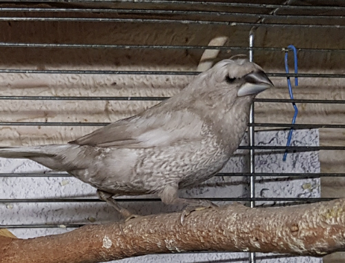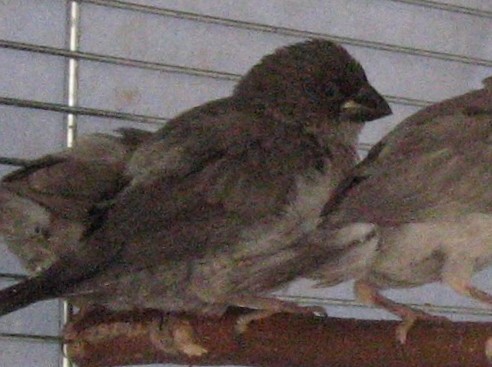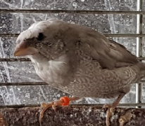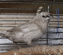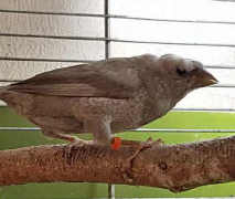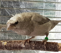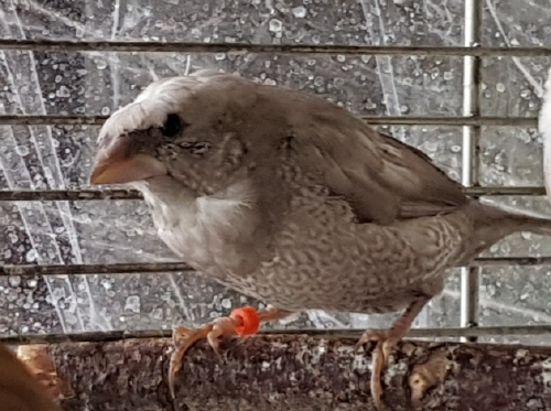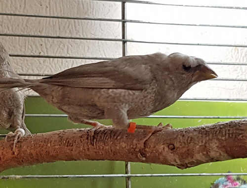 Крупный жемчужно-коричневый самец (красное кольцо на правой лапке):