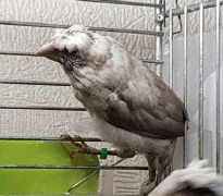 Крупный хохлатый жемчужный самец (оранжевое кольцо на правой лапке):