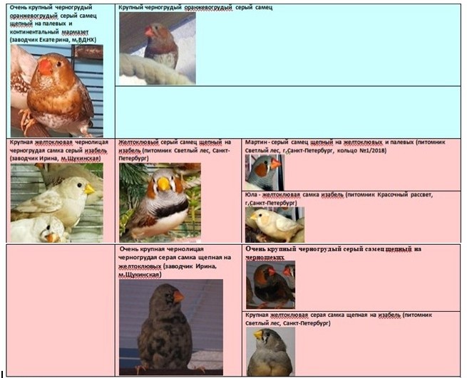 Родословная птенцов: