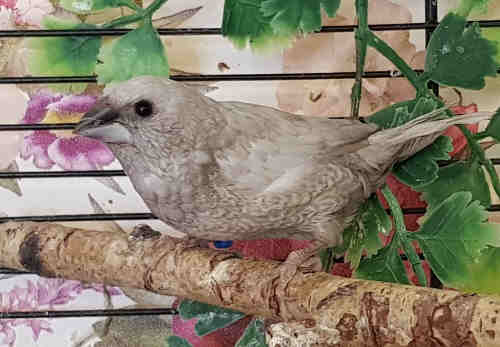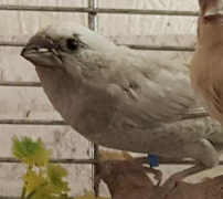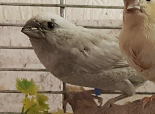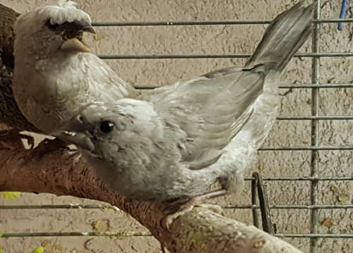 Шандор - крупный жемчужный самец (коричневое кольцо на левой лапке):