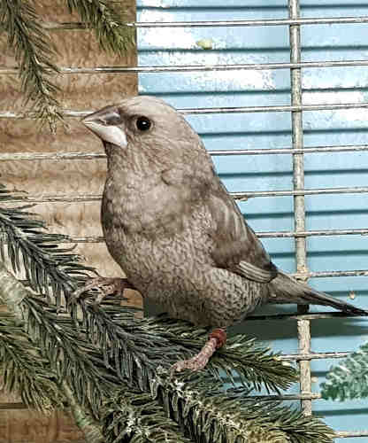 Грэйс - крупная жемчужно-серая самка (голубое кольцо на правой лапке):