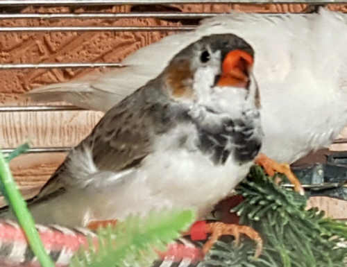 Тони - черногрудый серый самец щепный на чернощеких и лайтбэк (красное кольцо на левой лапке):