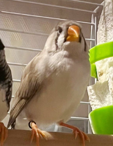 Тима - черногрудый серый самец щепный на чернощеких и лайтбэк (зеленое кольцо на правой лапке):