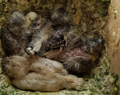 Гнездование №330: Птенцы от пары Скай из Светлого леса и Тортуга, рождение 28.09.22 (5 птенцов)