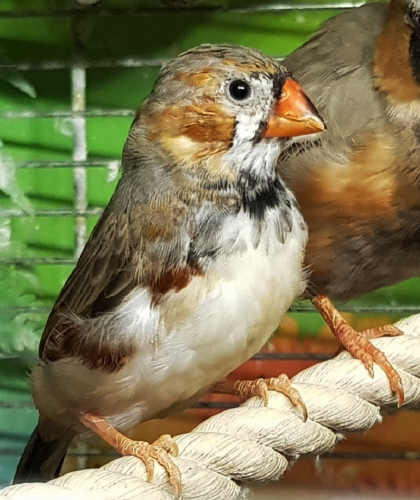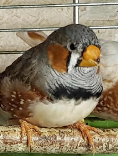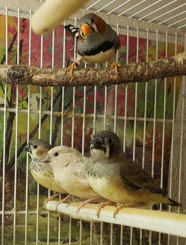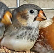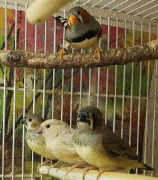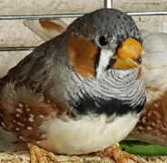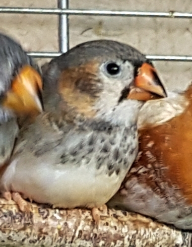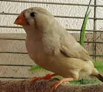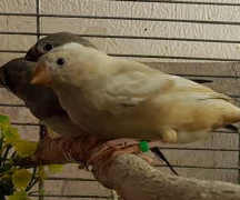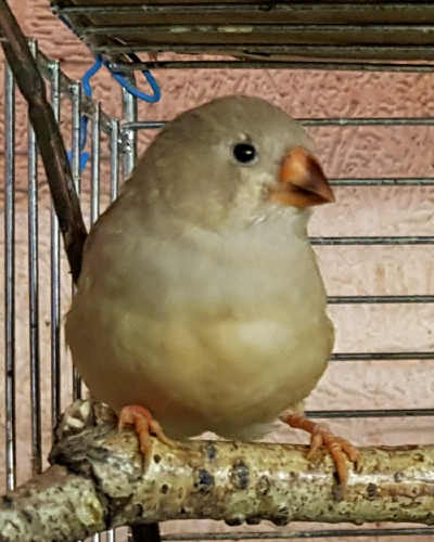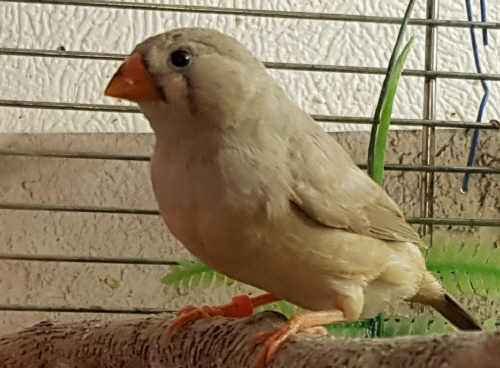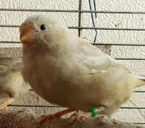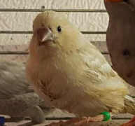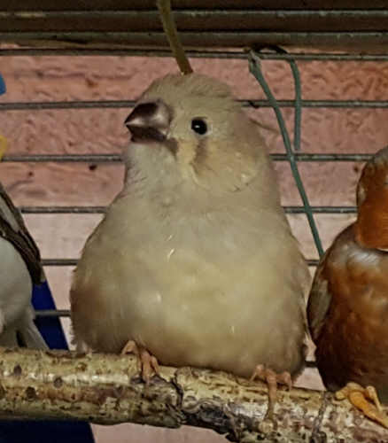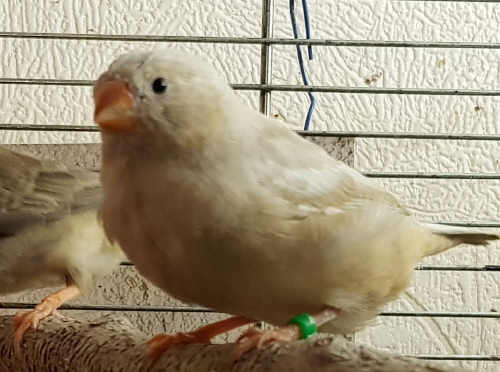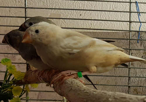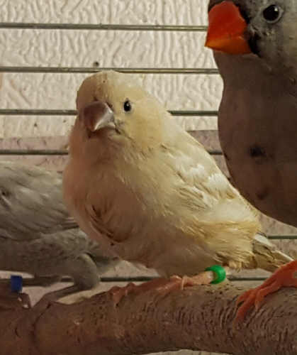 Фисташка - крупная палевая самка щепная на желтоклювых и черногрудых (оранжевое кольцо на правой лапке):