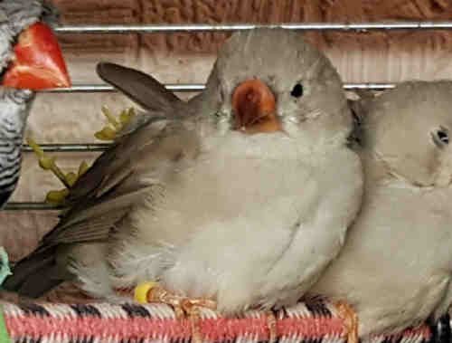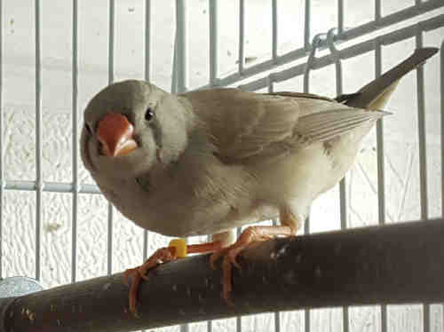 Ирма - чернолицая палевая самка щепная на чернощеких и черногрудых (желтое кольцо на правой лапке):