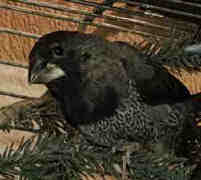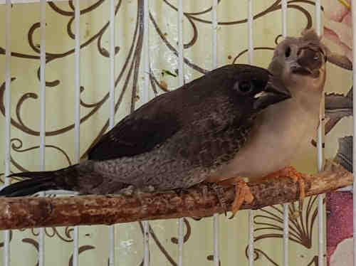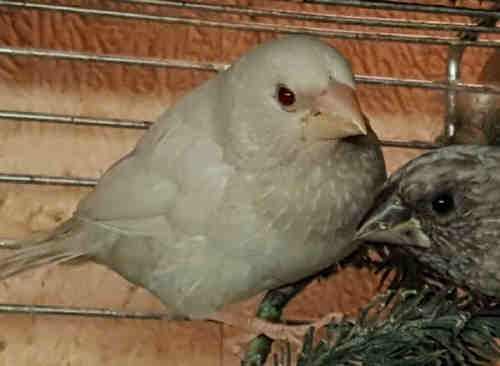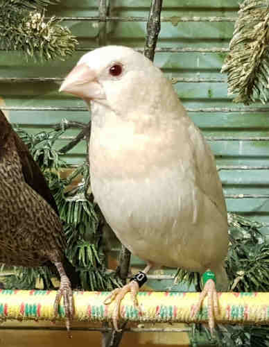 Лика - крупная самка кремино (красное кольцо на левой лапке):