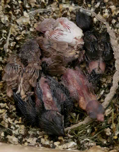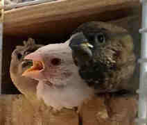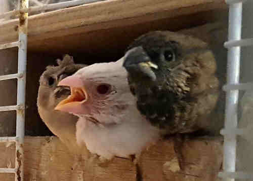 Гнездование №340: Птенцы от пары крупный самец кремино и Ребекка, рождение 06.02.23 (3 птенца)