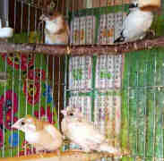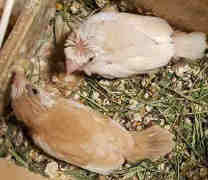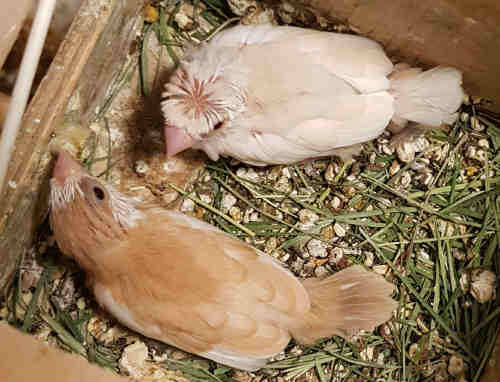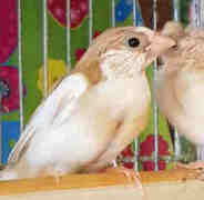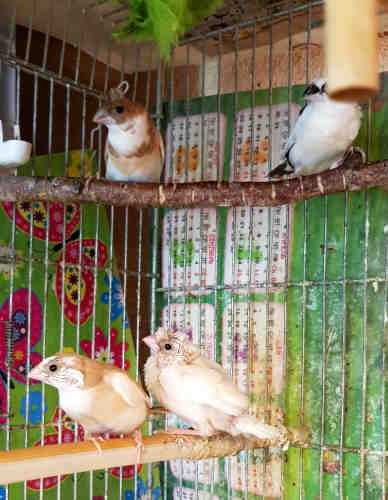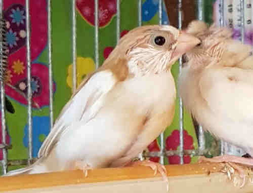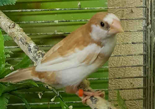 Крис - пестрый бело-палевый самец (оранжевое кольцо на правой лапке):