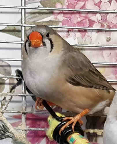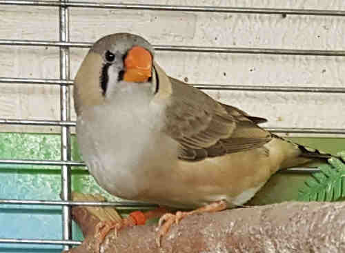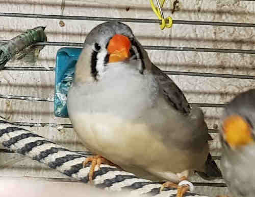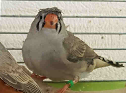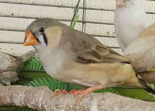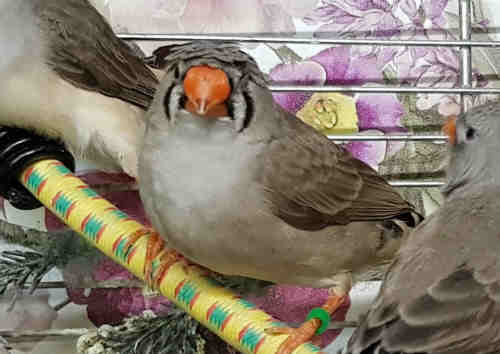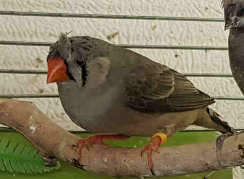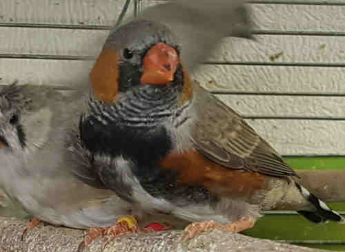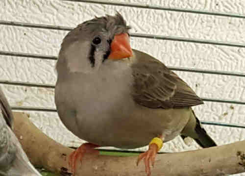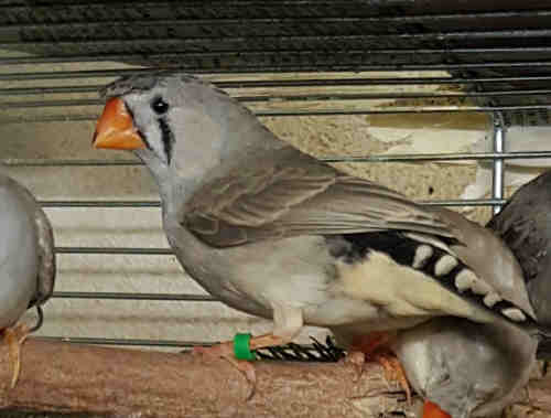 Амбер (Педро) - крупный чернолицый серый самец щепный на черногрудых (красное кольцо на правой лапке):