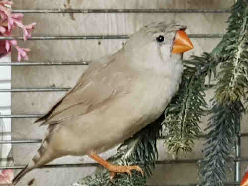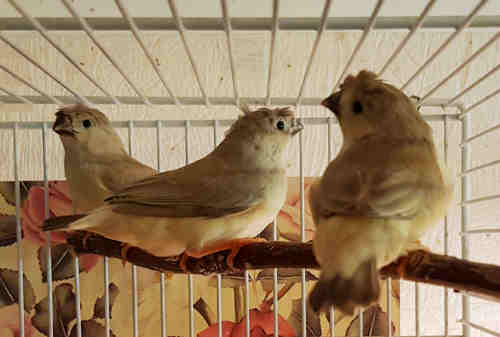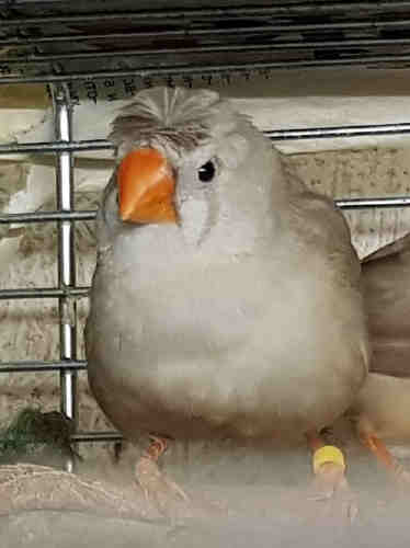 Долька - хохлатая черногрудая палевая самка (сиреневое кольцо на правой лапке):