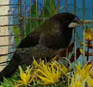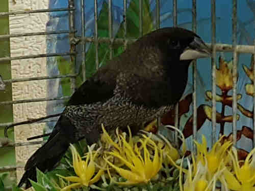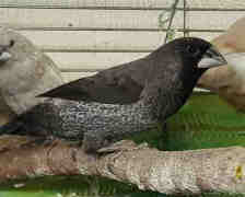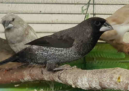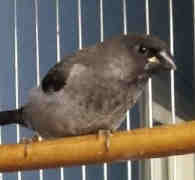 Арго - крупный черно-серый самец щепный на кремино (красное кольцо на правой лапке):