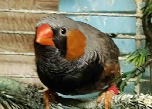Алладин - крупный чернолицый серый самец щепный на черногрудых и эмо (красное кольцо на левой лапке):