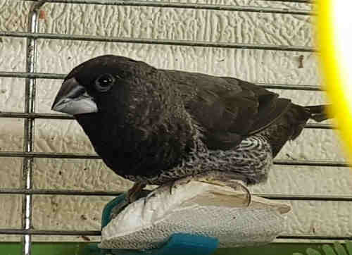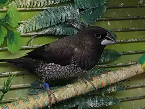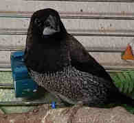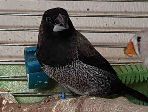 Мигель - крупный черно-серый самец щепный на кремино (синее кольцо на правой лапке):
