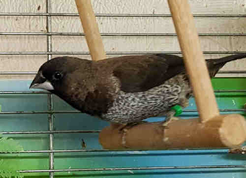Айваз - крупный черно-коричневый самец щепный на кремино (зеленое кольцо на левой лапке):