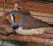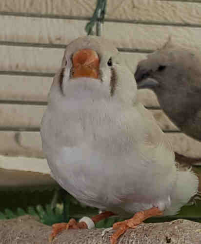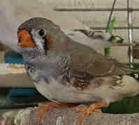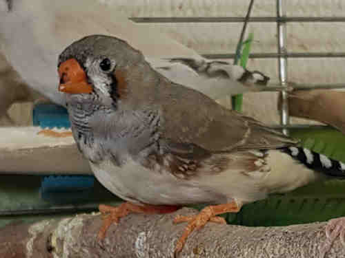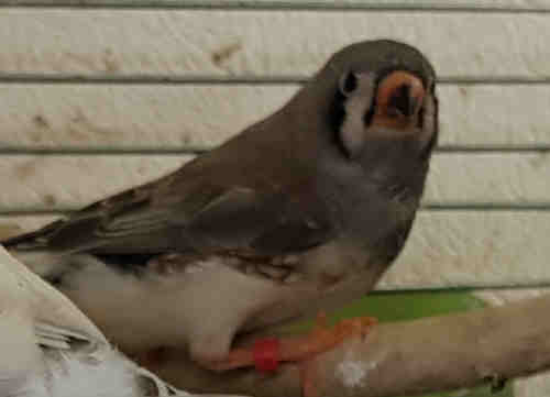 Сева - серый самец щепный на черногрудых (красное кольцо на правой лапке):