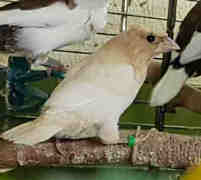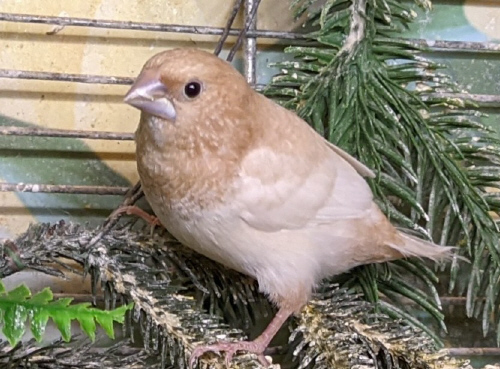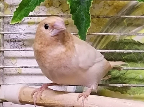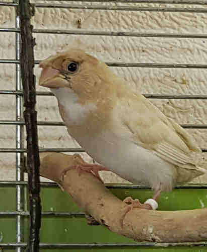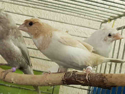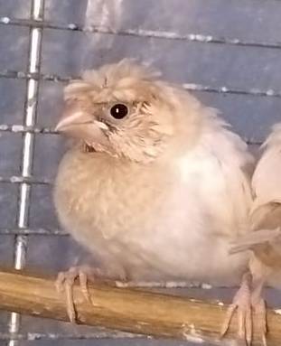 Лорен - хохлатая светлокрылая палевая самка (белое кольцо на левой лапке):