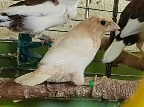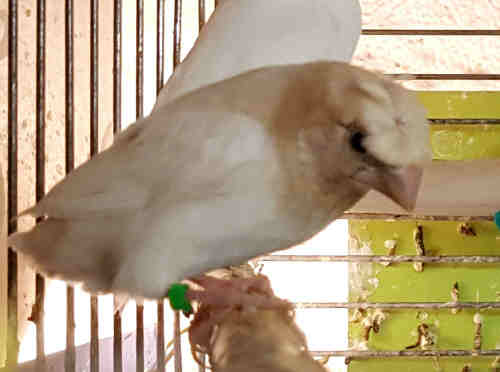 Рори - хохлатый светлокрылый палевый самец (зеленое кольцо на правой лапке):