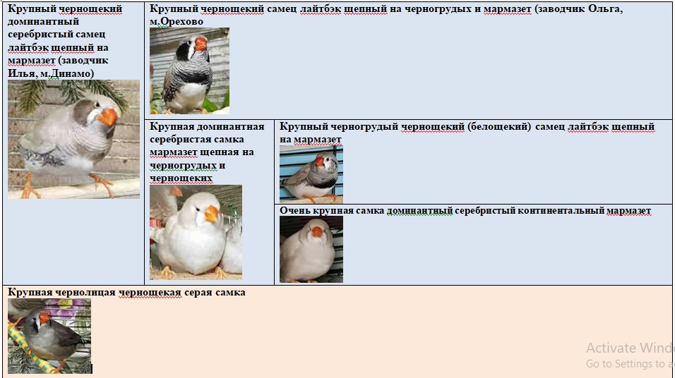 Родословная птенцов: