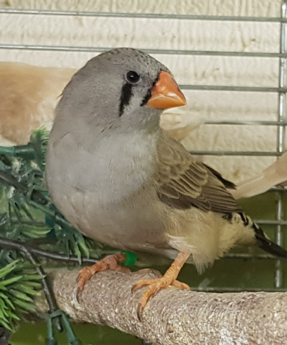 Сулико - крупная чернолицая серая самка щепная на черногрудых (зеленое кольцо на правой лапке):
