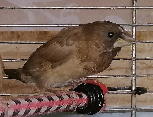 Ромул - крупный каштановый самец щепный на крано-коричневых (оранжевое кольцо на правой лапке):