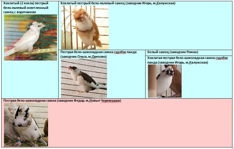 Хильда - пестрая бело-шоколадная самка (без кольца):