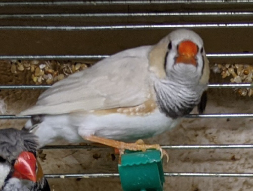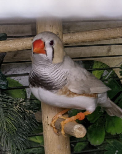 Анабель - крупная самка мармазет щепная на черногрудых (черное кольцо на правой лапке):