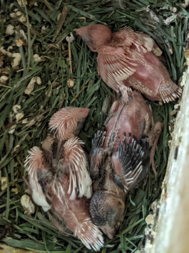 Гнездование №387: Птенцы от пары Снифф и Дюна, рождение 18.04.25 (3 птенца)