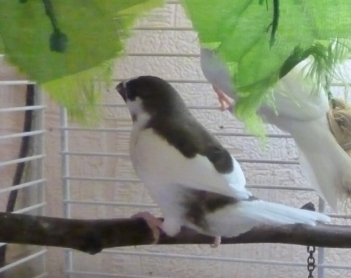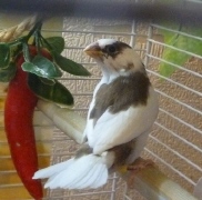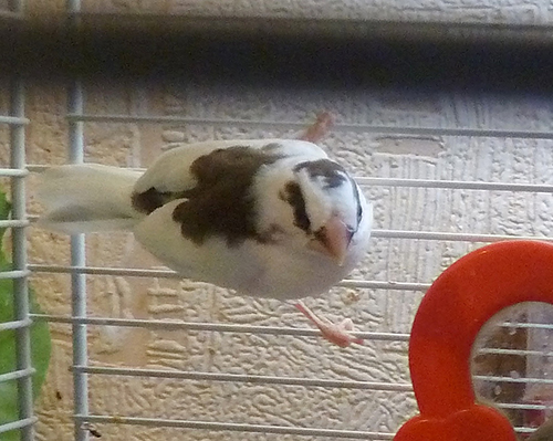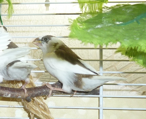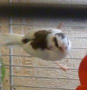 Тима - пестрый бело-шоколадный самец сэдлбэк (без кольца):