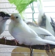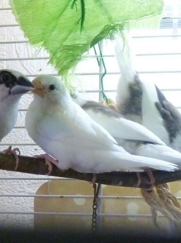 Поля - белая самка (сиреневое кольцо на левой лапке):