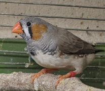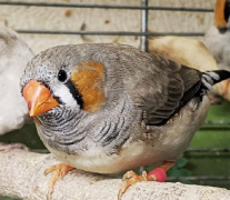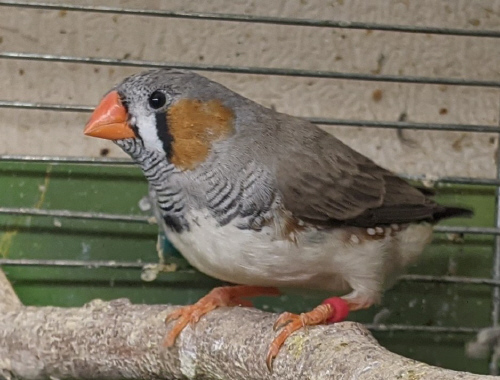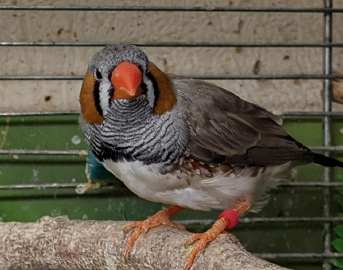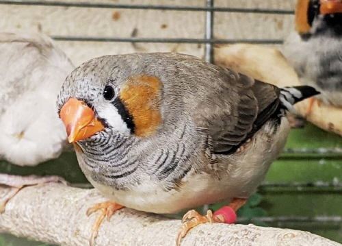 Кинг - крупный чернощекий серый самец щепный на мармазет и черногрудых (оранжевое кольцо на левой лапке):