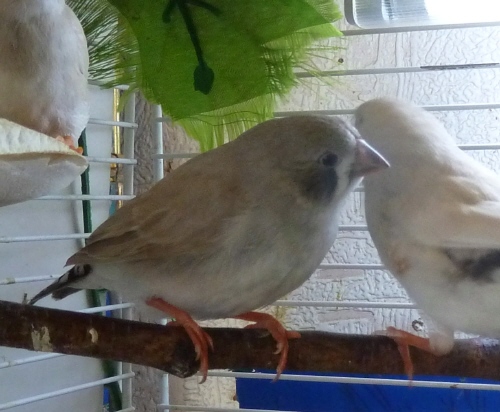 Гнездование №42-2: Птенцы от пары крупный чернолицый чернощекий серый самец и Аза, рождение 10.06.14 (2 птенца)