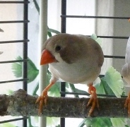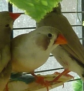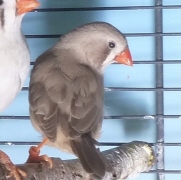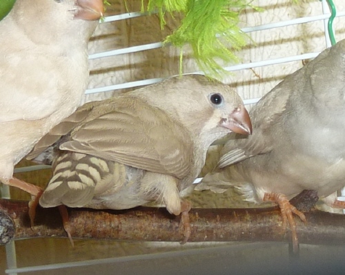 Юси - чернощекая палевая самка щепная на черногрудых (оранжевое кольцо на левой лапке):