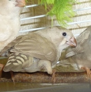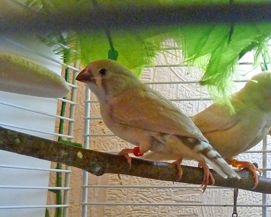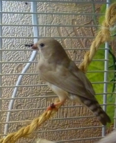Зельда - чернощекая палевая самка щепная на черногрудых (коричневое кольцо на левой лапке):