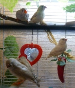 Гелла - чернощекая палевая самка щепная на черногрудых (красное кольцо на левой лапке):