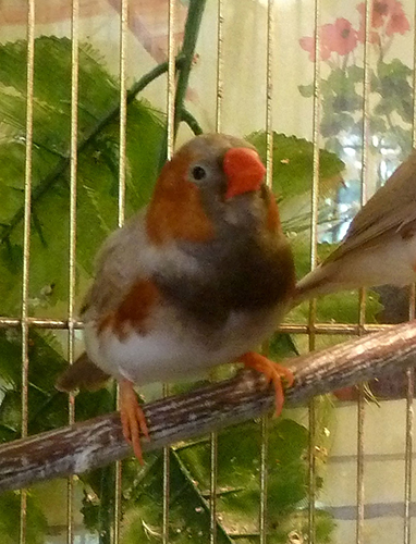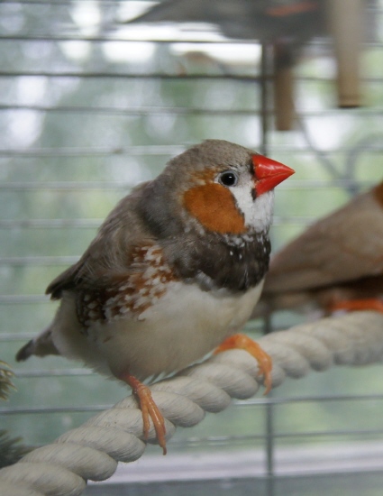 Фаина Фаина - черногрудая чернощекая палевая самка щепная на оранжевогрудых |
